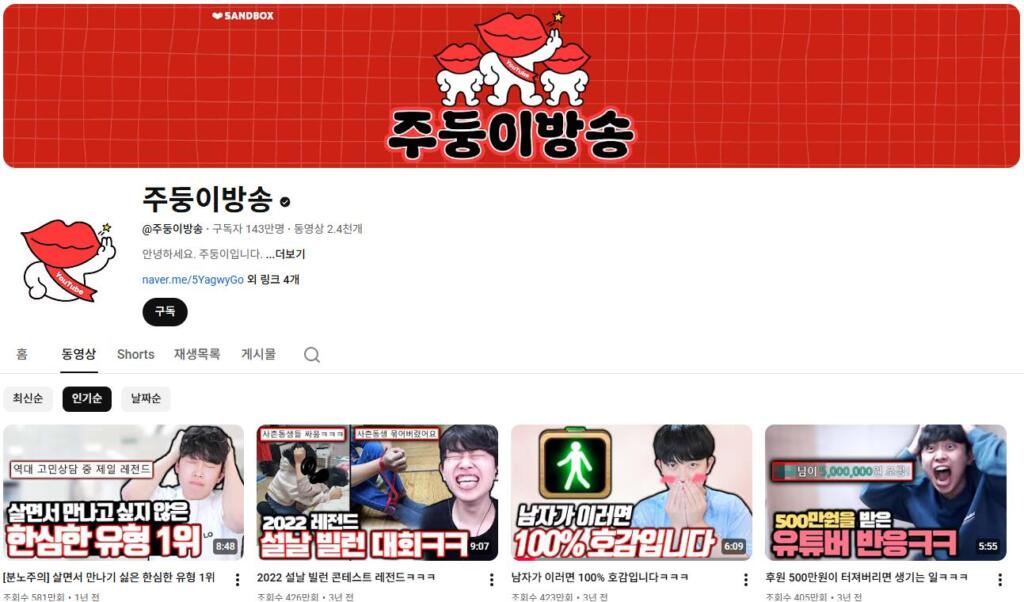 이외에도 ‘주둥이방송 쇼츠’, ‘주둥이방송 생방송’, ‘주둥이방송 게임’ 과 같이 연관 채널을 개설해 운영중입니다.